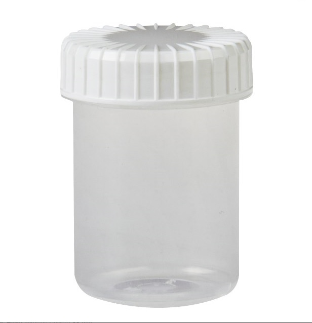 Optipot geproduceerd van het materiaal PP (polypropyleen) naturel met opgeschroefde PP geribbeld deksel.